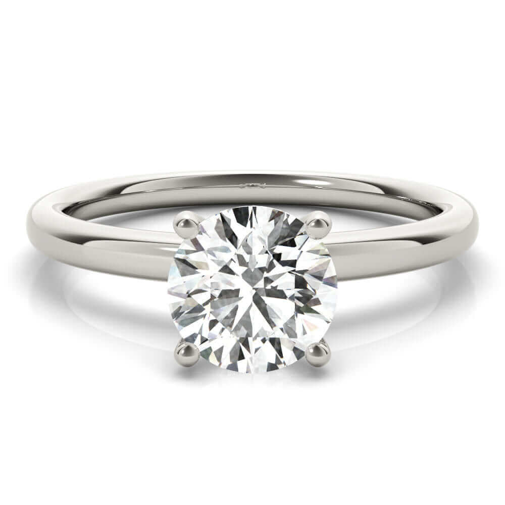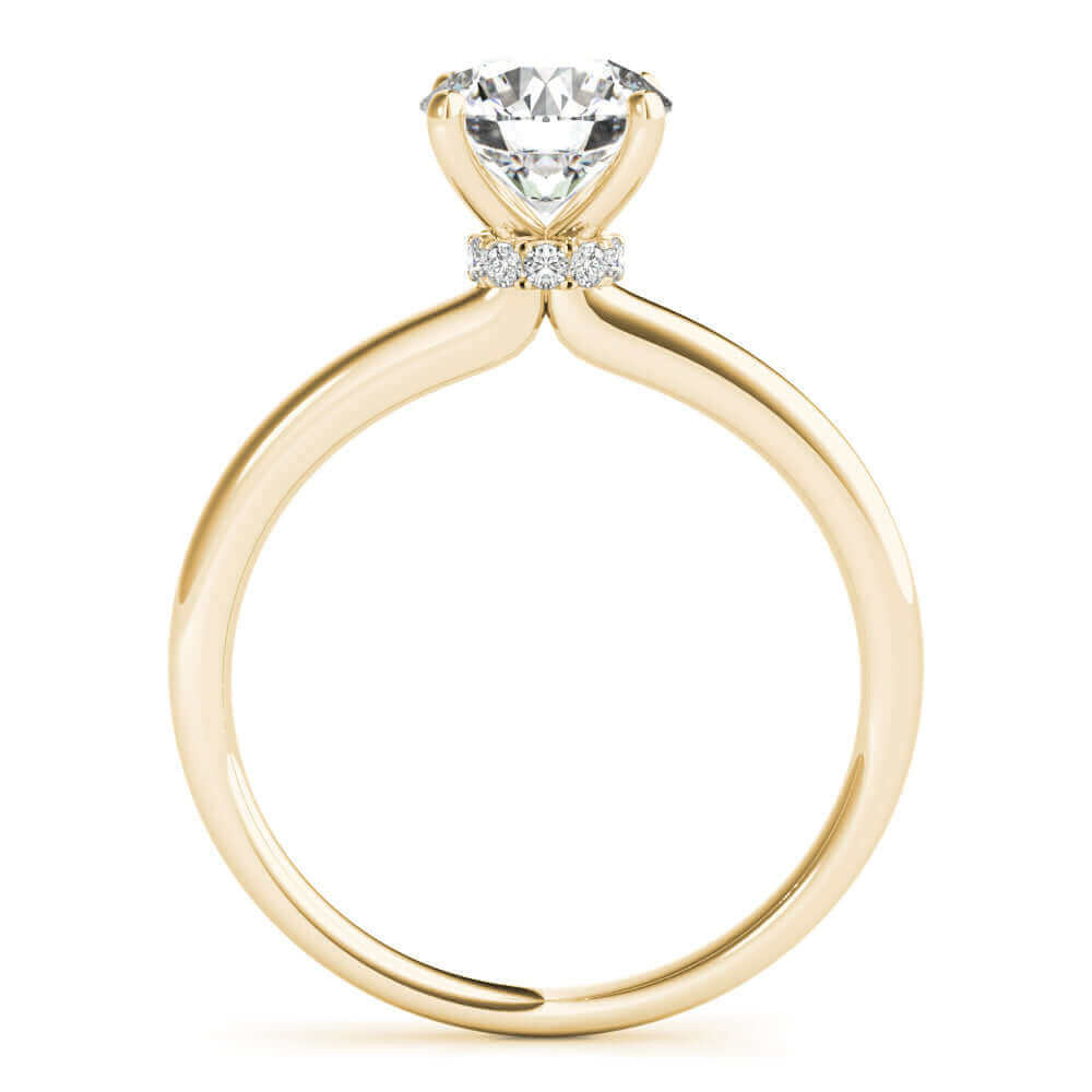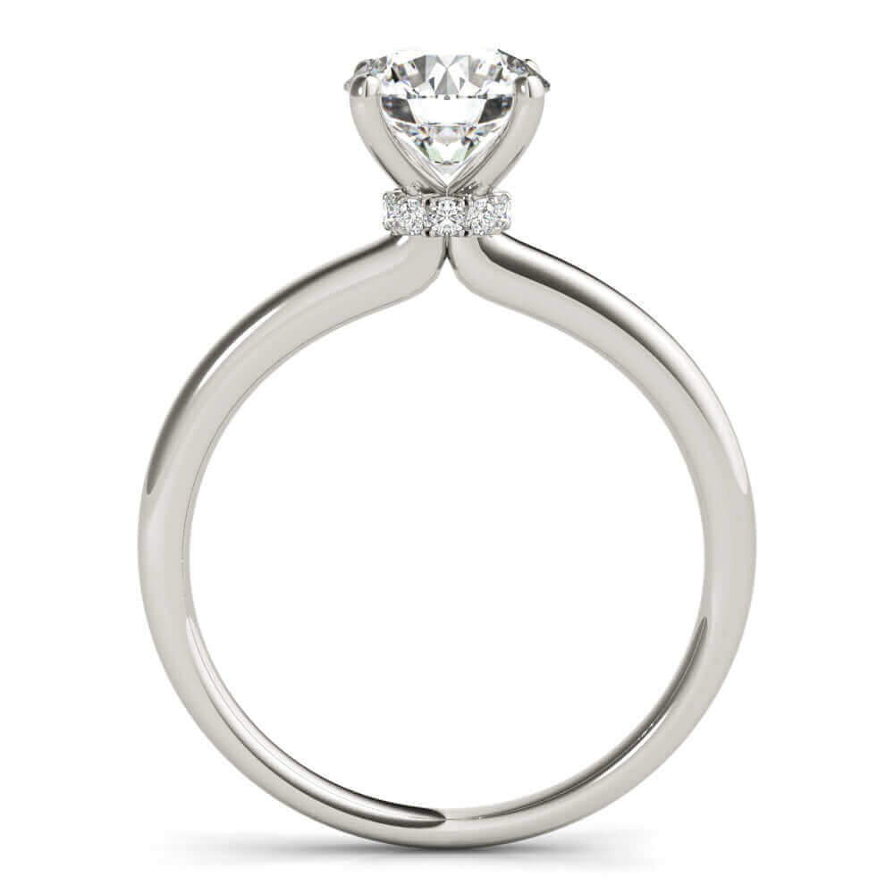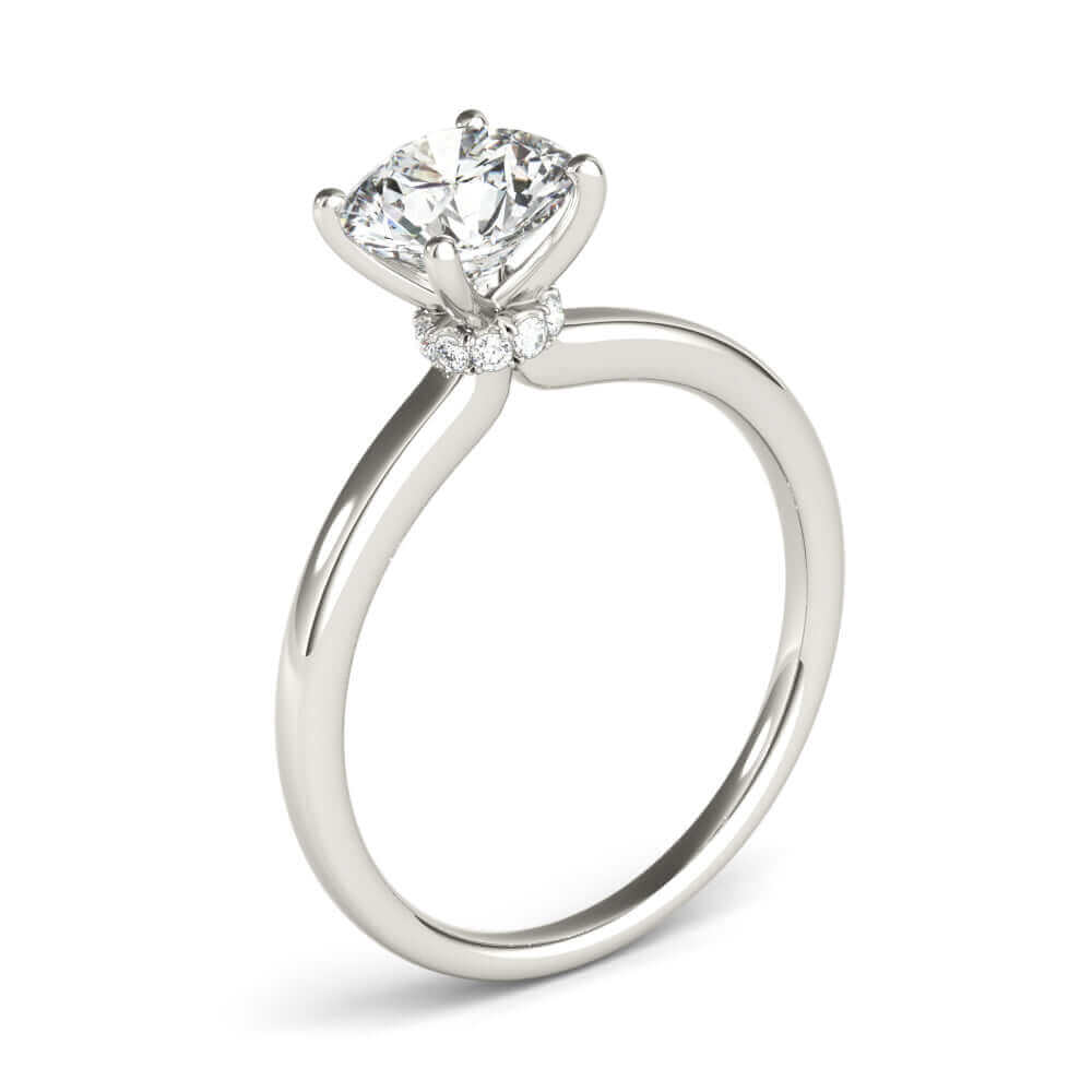 Hidden Halo Solitaire Ring 0.5 Carat & 1 Carat Round Cut Diamond Solitaire Engagement Ring 14K White Gold 4 Prong accent diamond halo Ribbon under the center stone.