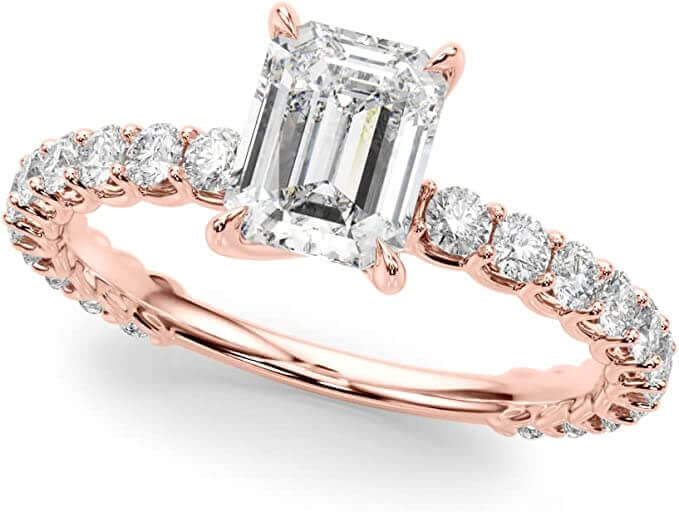 - EMERALD AND ROUND CUT SET WITH WHITE GOLD ENGAGEMENT RING: Crafted in 14K white gold, this dazzling design features a chic 1.00 ct.tw emerald and round-cut Lab Grown diamond solitaire in a traditional four-prong setting atop a pinched shank. A classic she'll treasure, this engagement ring is buffed to a brilliant luster. With this solitaire design, you will forever be in that sparkle state of mind.